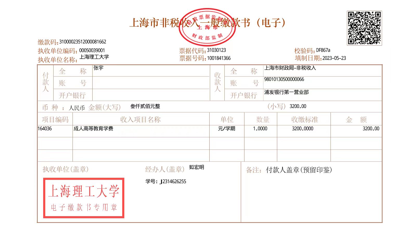 1.手机微信/支付宝扫下方二维码或通过Welink点击“校园支付”或下载“随申办市民云”APP绑定个人信息进入缴费查询页面。
