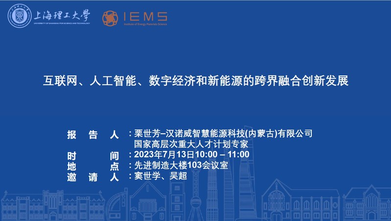 讲座公告照片.jpg 汉诺威智慧能源科技(内蒙古)有限公司总裁、国家高层次重大人才计划专家栗世芳女士作“互联网、人工智能、数字经济和新能源的跨界融合创新发展”主题的报告。