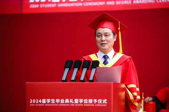 今年,我校人工智能专业迎来了首届毕业生,而我想说的是,人工智能不是某个专业的专属,事实上我们已经见证了AI for science、AI for engineering、AI for art等等所产生的神奇效应,AI for all应该成为数智时代任何专业、任何人、任何产业的生存方式与生产方式。同学们要主动拥抱AI、掌握AI、运用AI,去构建人、自然、社会的和谐关系,为发展新质生产力插上腾飞的翅膀。